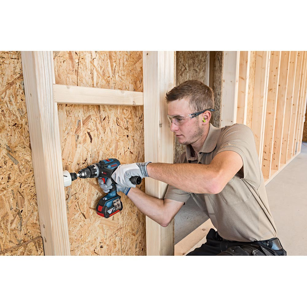 Аккумуляторная ударная дрель-шуруповерт Bosch GSB 18V-85 C предназначена для завинчивания и отвинчивания винтов, а также для сверления в древесине, металле, керамике и пластмассе. Ударная функция позволяет сверлить в кирпиче, каменной кладке и камне. Жёсткий крутящий момент 85 Нм и бесщёточный EC двигатель обеспечивают высокую скорость работы в самых требовательных применениях. Полностью металлический патрон для самых тяжёлых условий работы.