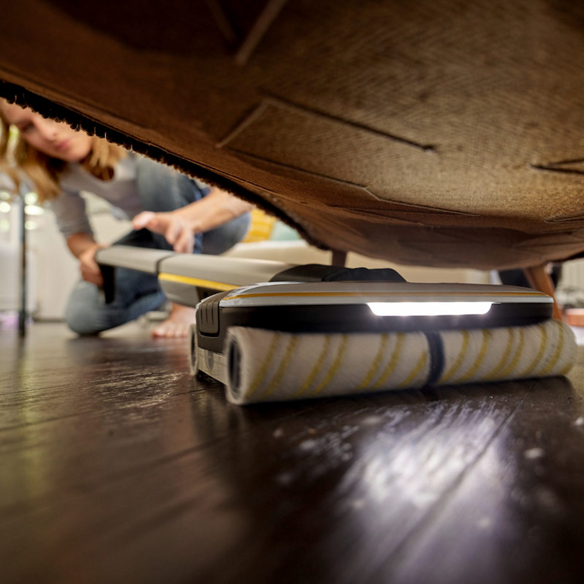 Модель подходит для любых напольных покрытий, экономит время, обеспечивает отличное качество уборки даже вдоль краевых участков и в углах, а также под мебелью благодаря прекрасной маневренности и шарниру.