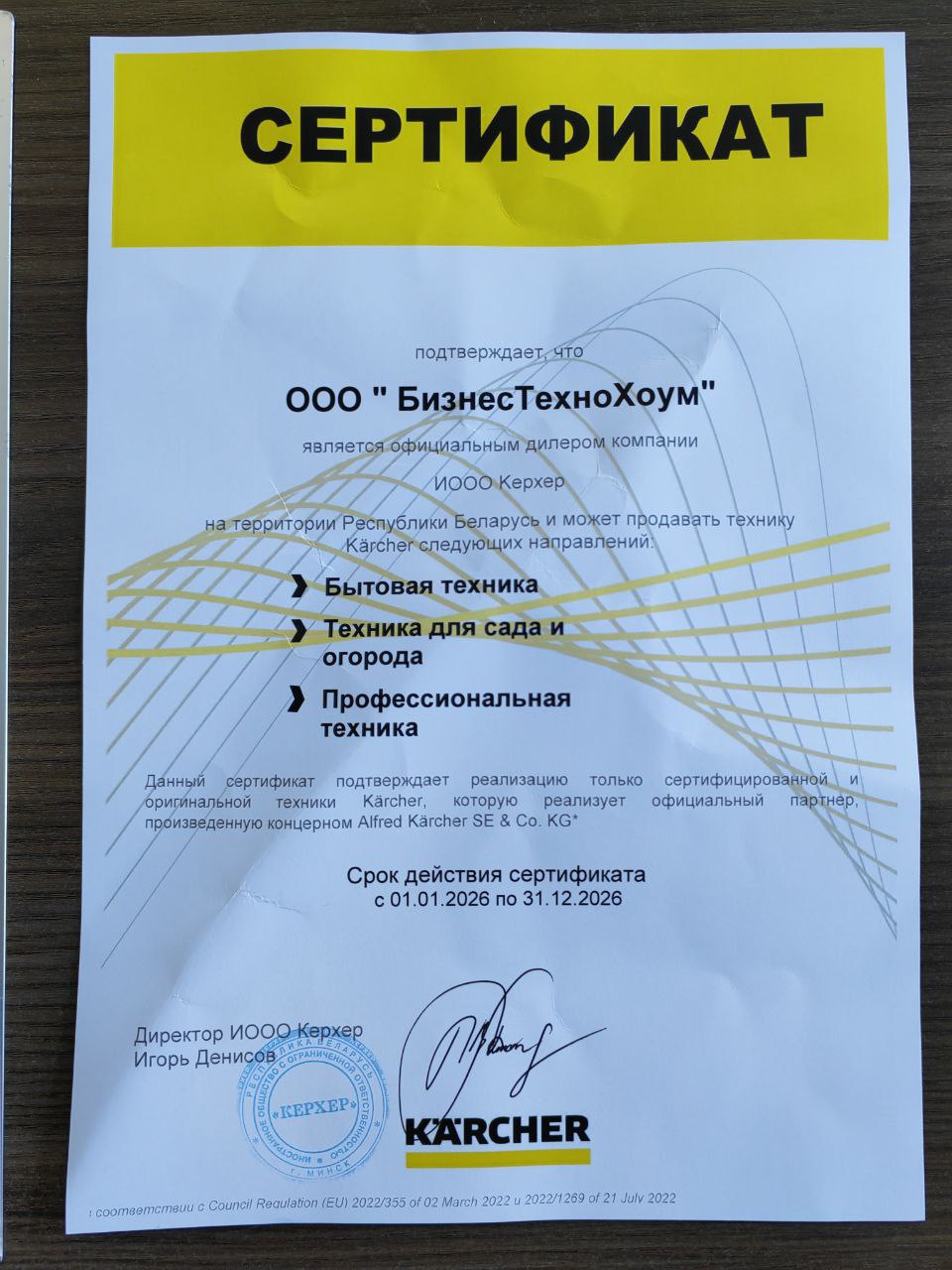 Данный Сертификат подтверждает реализацию только сертифицированной и оригинальной техники и аксессуаров Karcher.