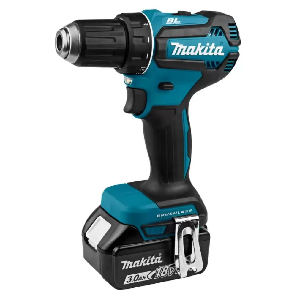 Компактная дрель-шуруповерт с бесщёточным двигателем и максимальным крутящим моментом 50 Нм. Модель Makita DDF485RF3J – надежный, рассчитанный на использование в разных условиях инструмент. Он предназначен для решения задач по сверлению и по закручиванию элементов крепежа.. . Данная техника позволяет эффективно производить работы с разными материалами и получать необходимые результаты без больших затрат времени. Диаметр производимых отверстий для дерева у предлагаемого агрегата составляет 38 мм, а для камня и стали 13 мм. Число оборотов в минуту у него регулируется от 0 до 500 на первой скорости и от 0 до 1900 на второй скорости.. . Основные преимущества:. Идеально подходит для универсальных работ по сверлению и заворачиванию шурупов.. 2 функции: сверление и завинчивание.. Высокий комфорт работы благодаря отличной балансировке машины и компактным размерам.. Электронное регулирование скорости с помощью переключателя. Очень постоянная скорость благодаря двигателю BL.. Долговечная, энергоэффективная и не требующая обслуживания машина благодаря бесщеточному двигателю.