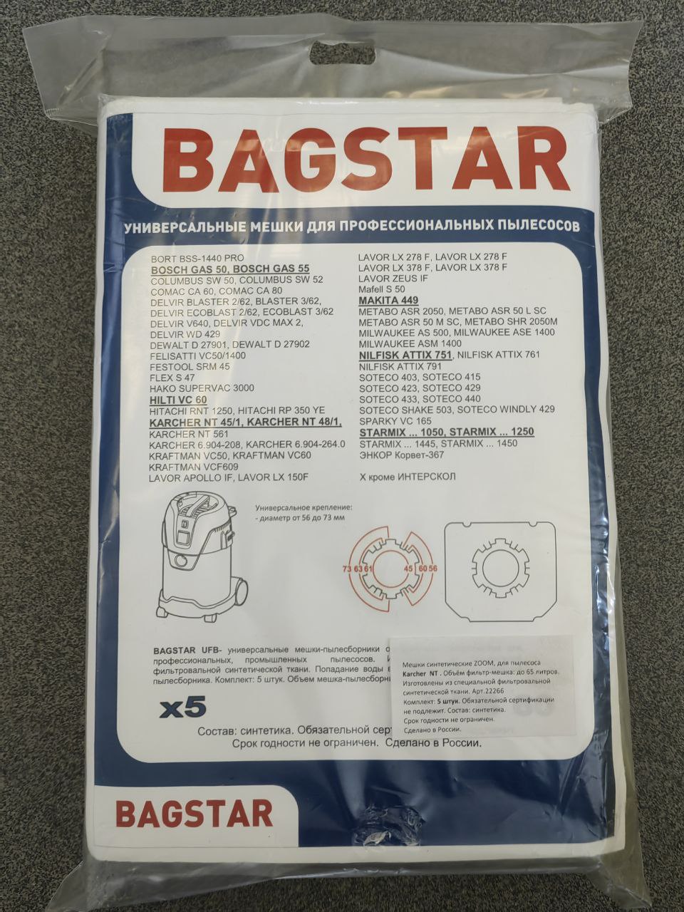 Фильтр-мешки синтетические для Karcher NT 45/1, NT 48/1, NT 65/2, 70/3 (3 шт.) и др.
