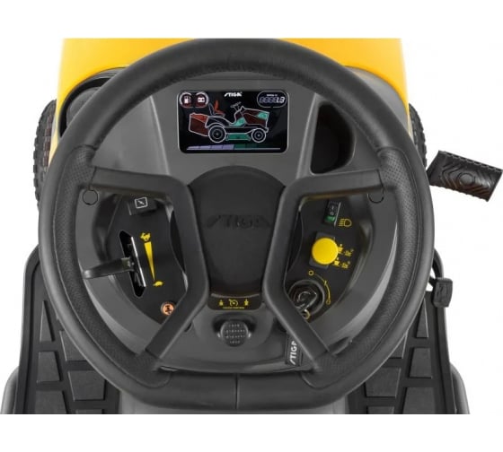 Садовый минитрактор Стига Эстейт 9122 W имеет ножную гидростатическую передачу, при помощи которой водитель может неограниченно повышать путевую скорость, не производя при этом остановку для переключения передачи. Есть умный широкоугольный дисплей с активной 5.5 дюймовой диагональю, которая отображает все необходимые рабочие индикаторы. Для большего комфорта при продолжительной работе, можно использовать функцию круиз-контроля. Руль имеет специальное мягкое покрытие «STIGA Premium», а сидение регулировки и удобные подлокотники «STIGA Comfort Plus».