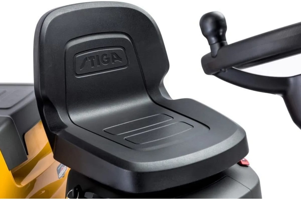 Райдер Стига Парк 300 имеет отличную эффективность стрижки благодаря производительному двигателю STIGA с рабочей выходной мощностью 7400 Вт и скоростью вращения 3200 об./мин. Управление и регулировка электромагнитной фиксацией лезвия и высотой покоса производится очень быстро, благодаря продуманному расположению соответствующих кнопок регулировки.