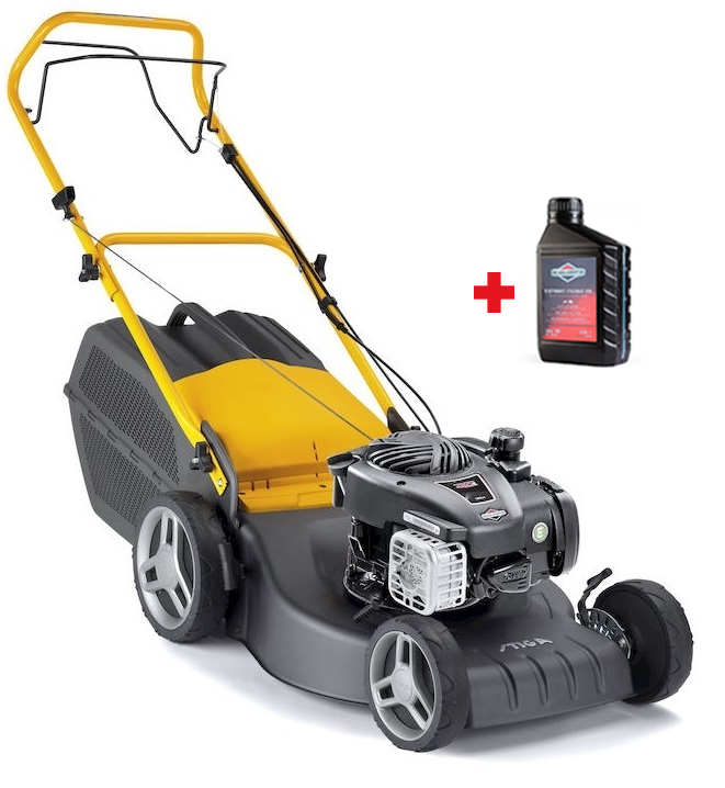 Самоходная бензиновая газонокосилка STIGA COLLECTOR 48 SB оборудована двигателем мощностью 1,75 кВт. Выброс травы может происходить назад либо в травосборник, закреплённый на газонокосилке.