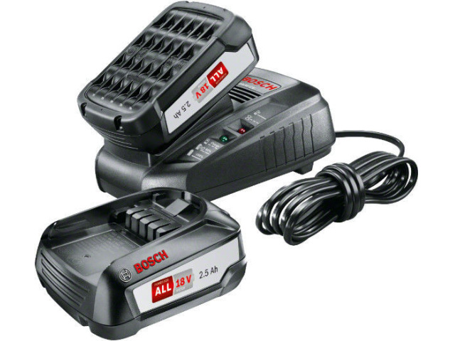 Набор Bosch 1600A011LD состоит из двух аккумуляторов PBA 18В 2,5 Ач и устройства быстрой зарядки AL 1830 CV.