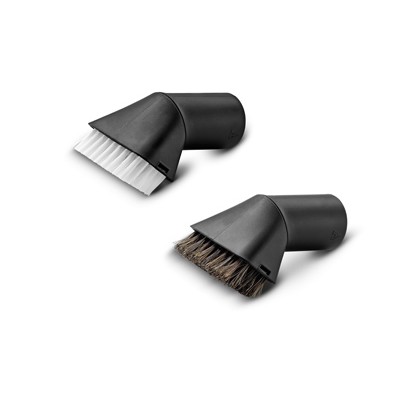 Насадка-кисть с жесткой щетиной обеспечивает тщательную очистку ковриков и обивки сидений, другая, с мягкой щетиной, бережную очистку чувствительных поверхностей (например, щитка приборов и центральной консоли).