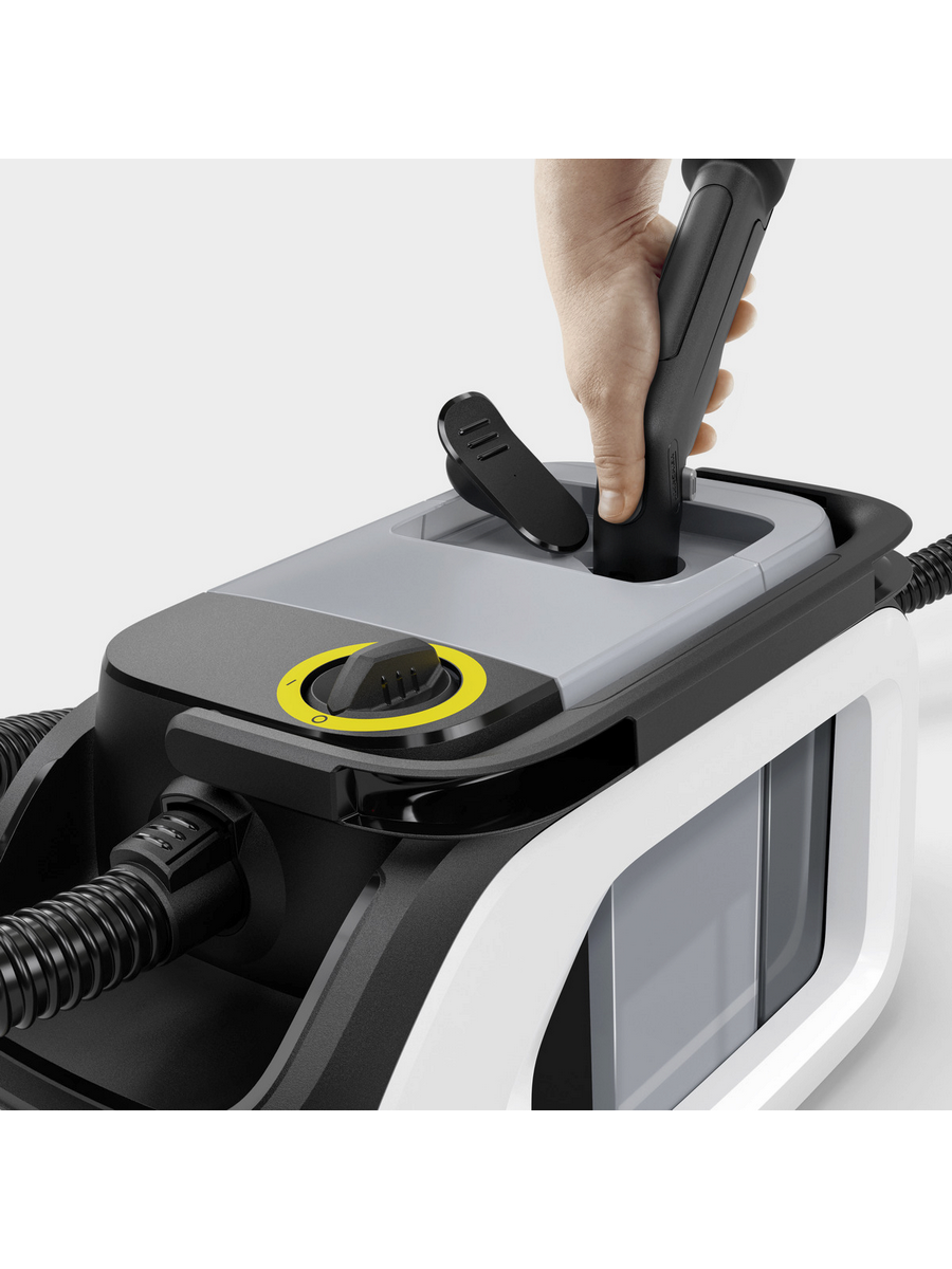 Моющая насадка для мягкой мебели легко и быстро удаляет даже глубокие загрязнения, а моющая щелевая насадка облегчает процесс очистки в самых труднодоступных местах. Всасывающий шланг с прикрепленной трубкой для подачи воды повышает удобство уборки.