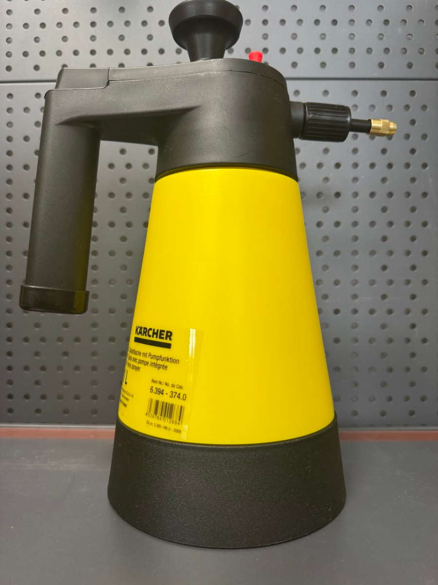 Применение: Залить средство для чистки или ухода, насосом создать в баллоне давление, отрегулировать струю и нанести средство.