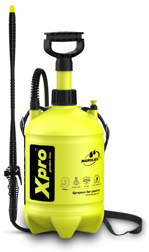 Опрыскиватель Marolex Xpro 9 имеет регулируемые форсунки, что обеспечивают плавное регулирование угла распыления с очень широкого до равномерной струи. Достаточна одна форсунка, которую можно использовать как для полива, так и для создания мелкого тумана. Насос разработан с использованием современной программы проектирования, анализирующей напряжение материала, благодаря чему мы получили легкий и долговечный насос. Рукоятка была адаптирована к форме ладони, что гарантирует надежную фиксацию при подкачке, минимизируя усталость.