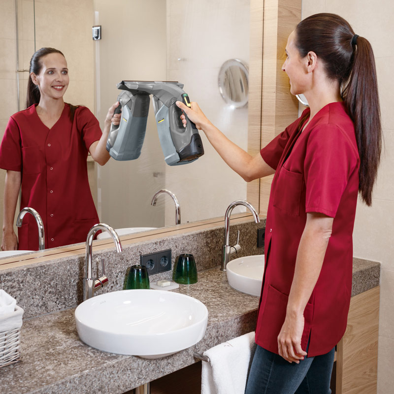 Мягкая, не скользкая рукоятка и небольшой вес в 0,7 кг обеспечивают комфортное применение. Объем контейнера составляет 200 мл, что в два раза больше, чем в бытовых устройствах. Очистка контейнера выполняется очень просто, что обеспечивает гигиеничность уборки ввиду отсутствия прямого контакта с грязной водой.