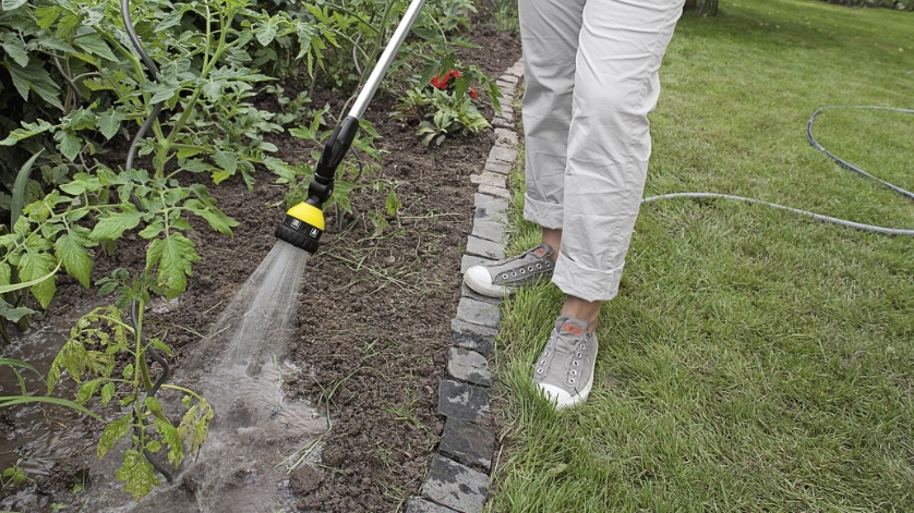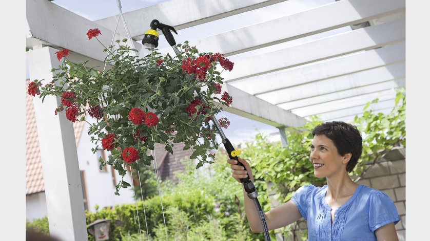Распылитель на штанге Plus с подвижной распылительной головкой (180°) - усовершенствованная версия базовой модели (2.645-157.0) - оснащен распылительной головкой с шарниром для поливки труднодоступных и высоких участков и крюком для удобного хранения (например, на заборе или на ветке) по окончании работы или во время перерывов.