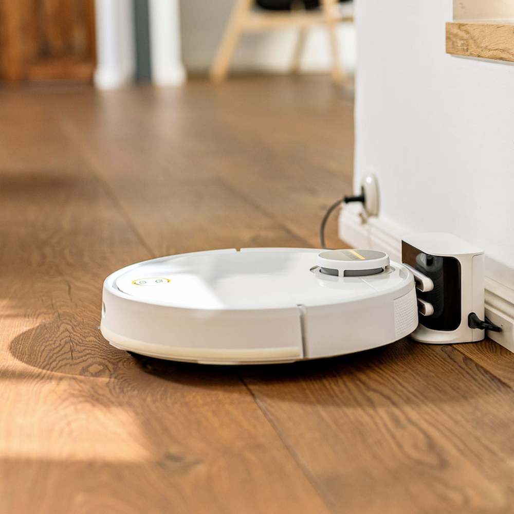 При помощи мобильного приложения робот-пылесос RCV 3 можно отправить в начальное путешествие, в ходе которого его лидарная система навигации автоматически составляет план помещений. Для каждого помещения можно задать индивидуальные параметры уборки, в частности, определить участки сухой и влажной уборки, а также зоны, которые не должны очищаться аппаратом. Датчики перепада высот исключают падение робота-пылесоса с лестниц.