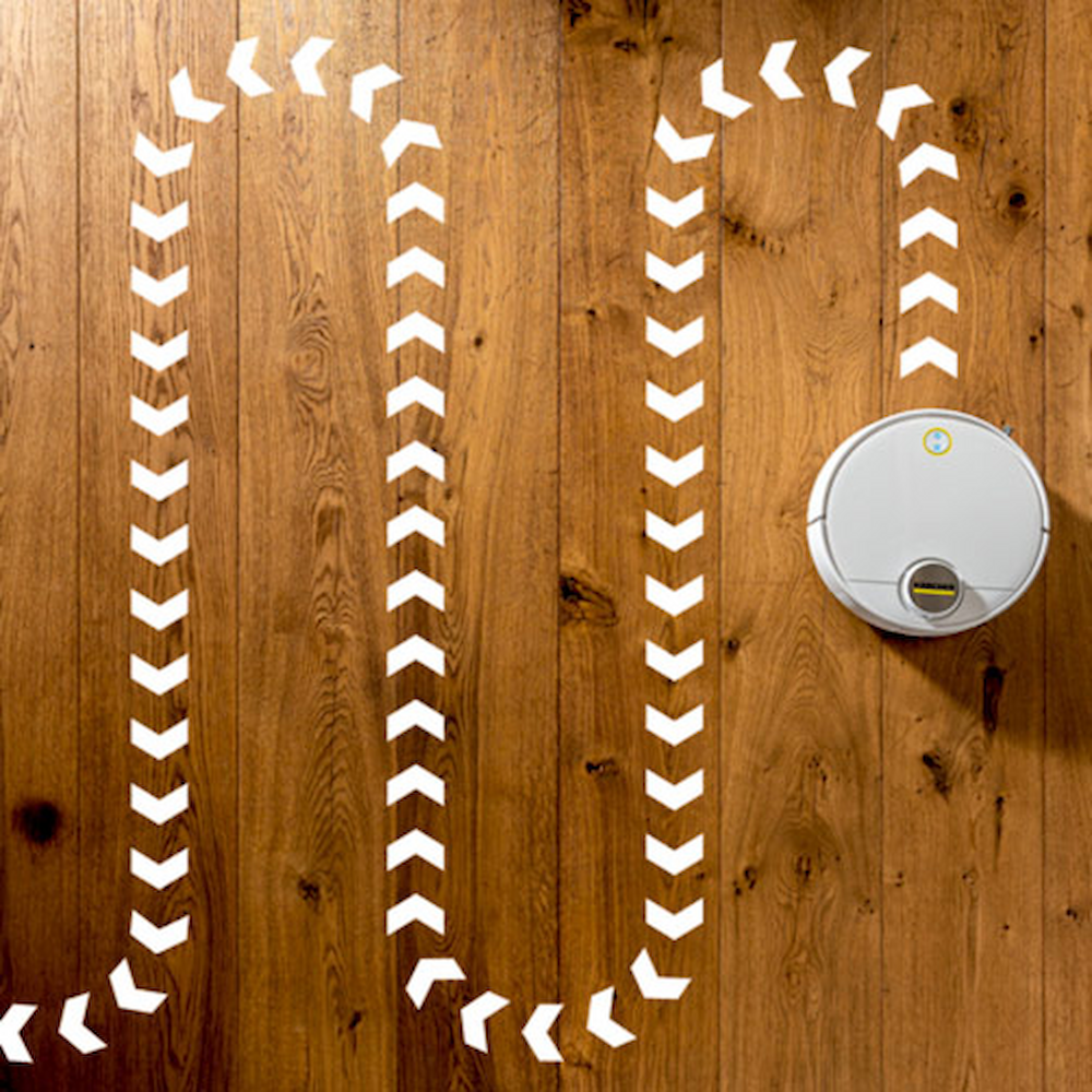 RCV 3 берет на себя всю заботу об уборке полов. После включения он самостоятельно систематически очищает как твердые напольные покрытия, так и ковры с коротким ворсом. Сухой мусор, сметаемый вращающейся щеткой и боковой щеткой для уборки по краям помещения, всасывается аппаратом и направляется во встроенный мусоросборник.