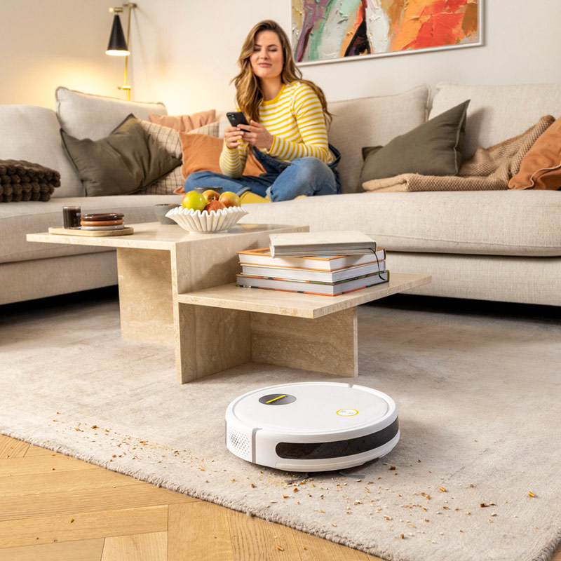 Робот-пылесос RCV 2 автоматически приступает к работе в соответствии с заданным графиком уборки.