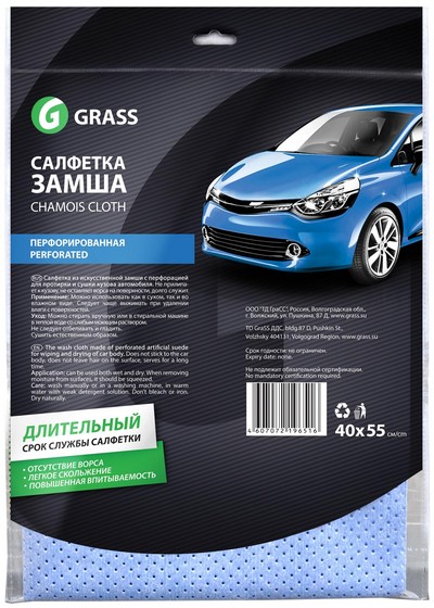 Салфетка из искусственной замши с перфорацией для протирки и сушки кузова автомобиля. Не прилипает к кузову, не образует катышек на поверхности, долго служит.