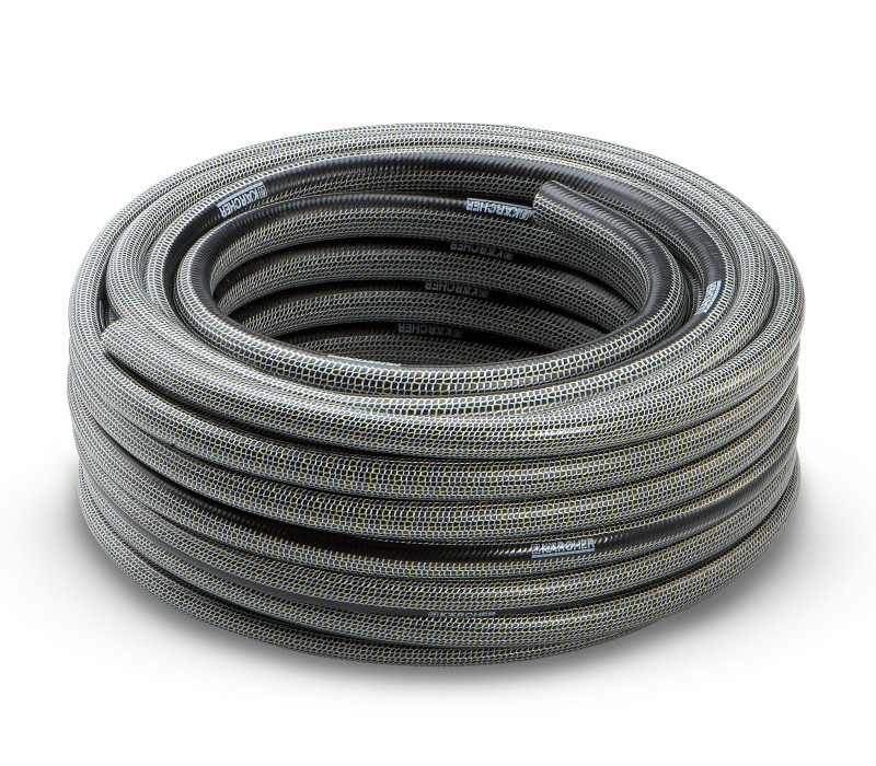 Высококачественный 5 - слойный садовый шланг, 1/2", 20 м. Устойчивый к высокому давлению благодаря запатентованному двойному армированию: обычное и перекрестное расположение желтых нитей Kevlar® от DuPont™. Наружный слой устойчив к атмосферным воздействиям и УФ-излучению, светонепроницаемый промежуточный слой предотвращает рост водорослей внутри шланга.