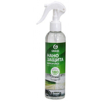 Нанопокрытие для любых стекол в виде спрея. Действует, заполняя микропоры и микротрещины стекла, образуя невидимую пленку. Дождь и грязь скатываются с обработанной поверхности, поверхность дольше остается чистой, служит более месяца, при скорости движения от 80 км/ч дворники практически не нужны.