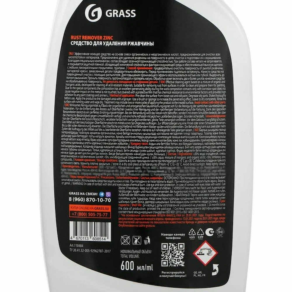 ≥30% очищенная вода; <5%: смесь неорганических и органических кислот; <5%: ингибирующие соединения цинка.