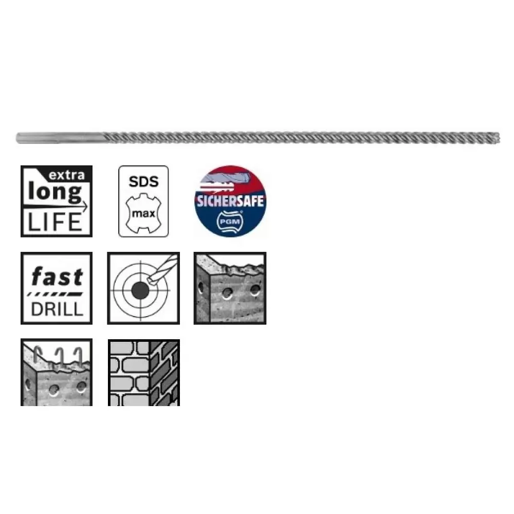 Полностью твердосплавная головка с четырьмя режущими кромками обеспечивает превосходную производительность и долговечность в железобетоне.