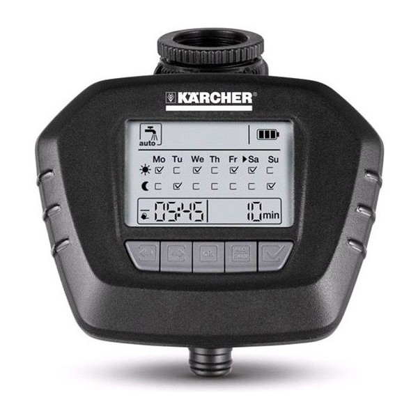 Таймер для полива WT 5 от Karcher - это удобный выбор для поливки садов любых размеров. Благодаря точному программированию по дням недели блок WT 5 прекрасно подходит для районов с ограниченными водными ресурсами. В автоматическом режиме данная модель имеет 14 циклов полива: можно выбрать, например, каждый будний день по 2 цикла продолжительностью до 120 минут.