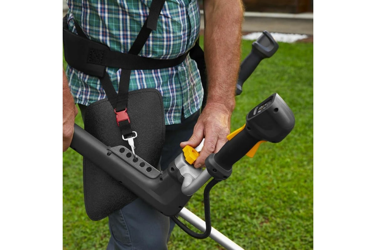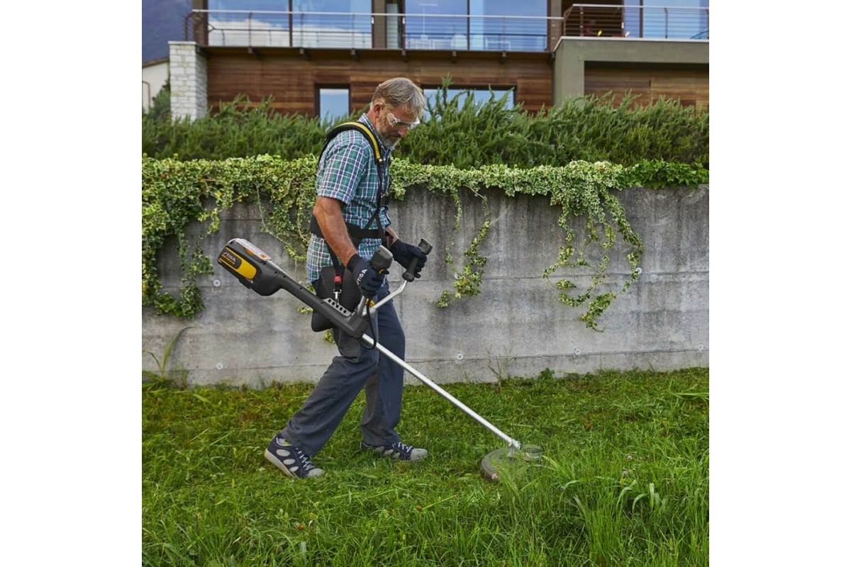 Аккумуляторный триммер Стига BC 700e B имеет удельный вес всего 5.5 кг. Данная модель является первой так называемой «мотоциклетной» моделью в аккумуляторной линейке Стига. Наличие ремня и пяти позиций его установки, триммер обладает идеальным балансом и контролем. Скорость можно настроить через клавиатуру на дисплее, который находится на рукоятке. Применяется режущая головка типа «Bump & Work», она работает на двойной леске на скорости до 6000 об/мин.