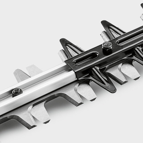 Ножи заточены с двух сторон, их длина 65 см, и он может резать ветви до 33 мм в диаметре. Две скорости помогут подобрать ритм работы для различного вида кустарников. Для предотвращения возможных повреждений и повышения безопасности, есть специальный защитный кожух.