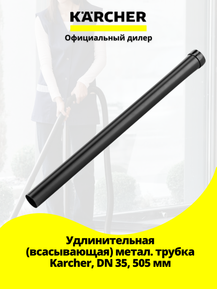 Всасывающая удлинительная трубка металлическая, DN 35, длина 505 мм. Применяется для очистки труднодоступных мест, например, потолков в высоких помещениях или замене существующих трубок, сломанных в процессе эксплуатации.